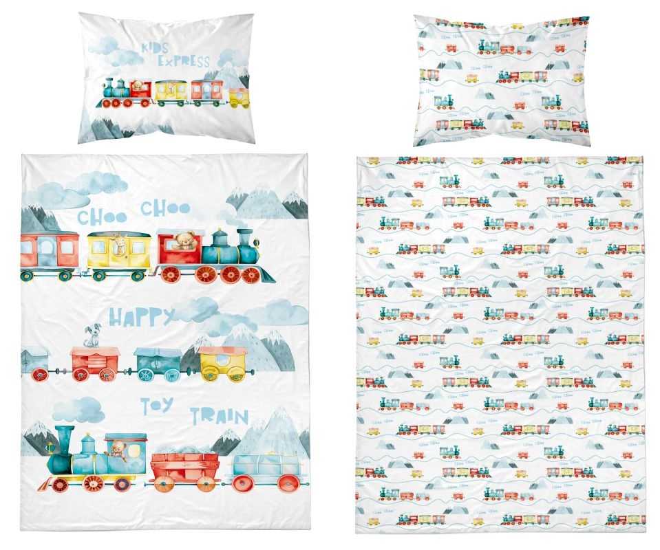 Povlečení do postýlky Vláčky je vyrobeno ze 100% bavlny. Povlečení do postýlky Vláčky. Bavlněné povlečení Vláčky v rozměru deka 100x135cm a polštář 40x60cm. Bavlněné povlečení do postýlky Vláčky se zapínáním na zip. Postýlkové povlečení s potiskem mašinek, z každé strany je povlečení odlišné.