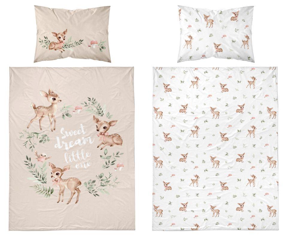 Dětské bavlněné povlečení do postýlky, motiv peřiny je z každé strany jiný, zapínání na zip, praní na 40°C