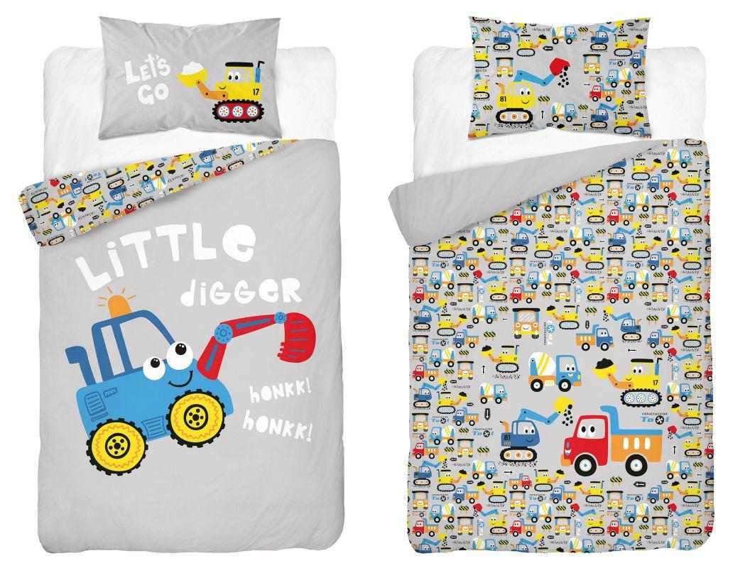 DL-065757 Povlečení do postýlky Bagr zelený 100/135, 40/60 |