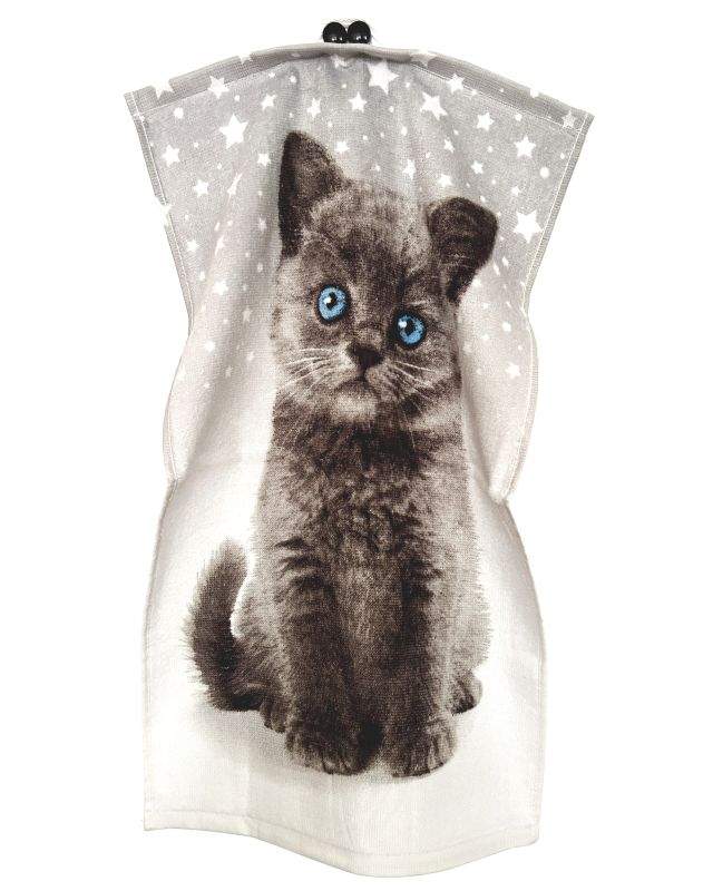 Dětský ručník Kotě grey je vyroben ze 100% bavlny - froté. Dětský ručníček s fototiskem šedého koťátka v rozměru 50x30cm. Šikovný dětský ručník Kotě grey do školky i na cesty.