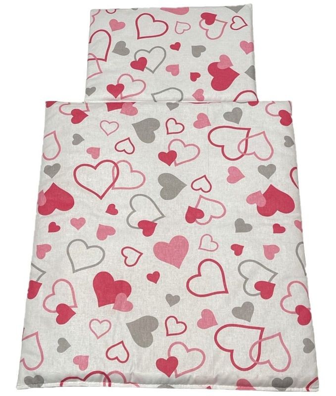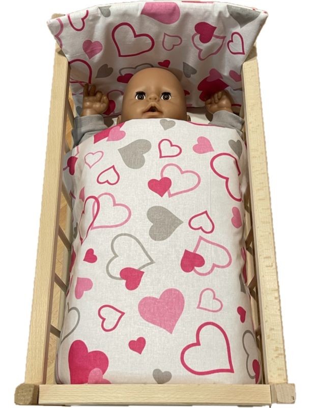 Úvod » Pro děti » Pro panenky » Peřinky do postýlky pro panenky Srdíčka šedorůžová