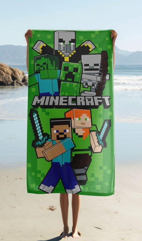 Osuška Minecraft Lets Survive je vyrobena ze 100% bavlny - froté. Plážová osuška Minecraft Lets Survive v rozměru 70x140cm. Froté osuška s kvalitním jednostranným potiskem. Osuška Minecraft Lets Survive na pláž i do koupelny.